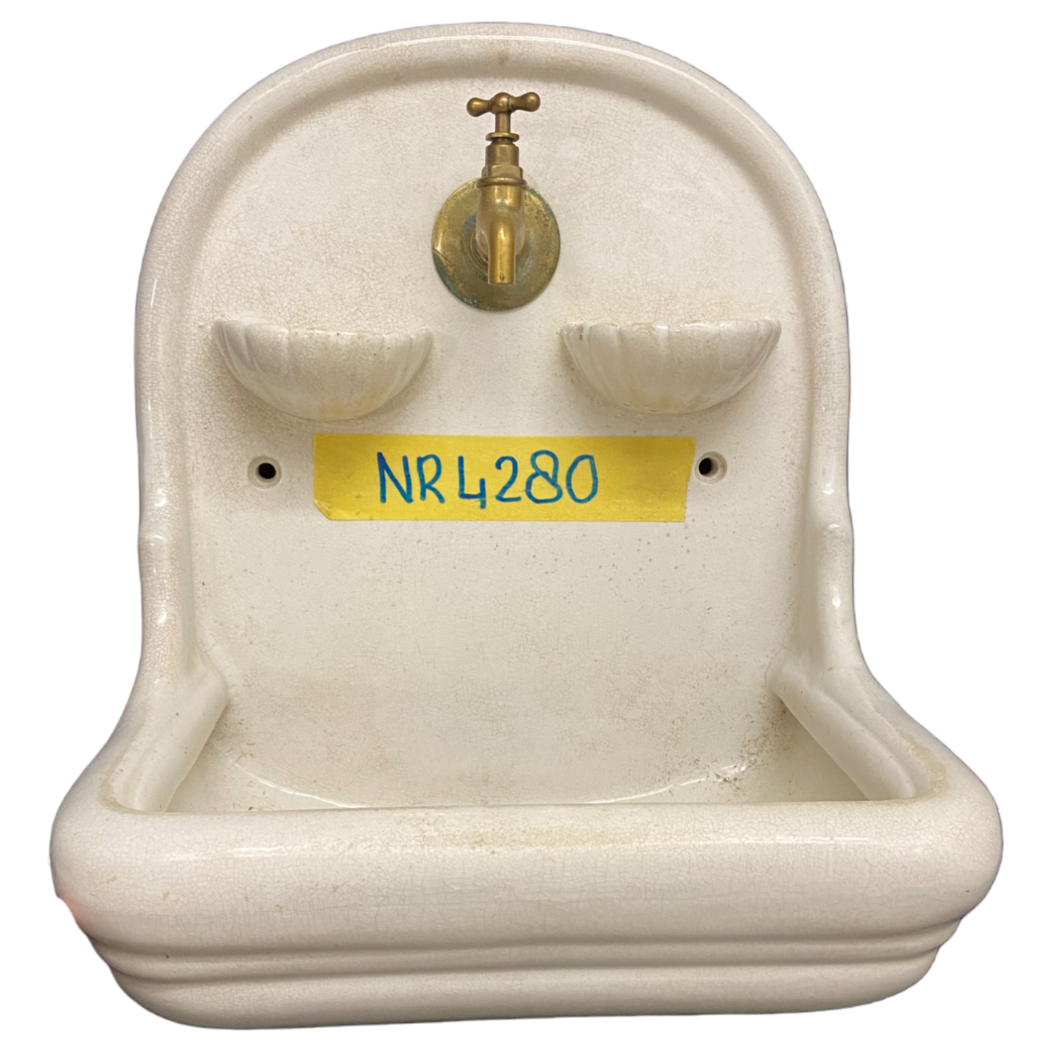 Prachtig oud fonteintje met aan de voorzijde 2 zeepbakjes in schelpvorm.
