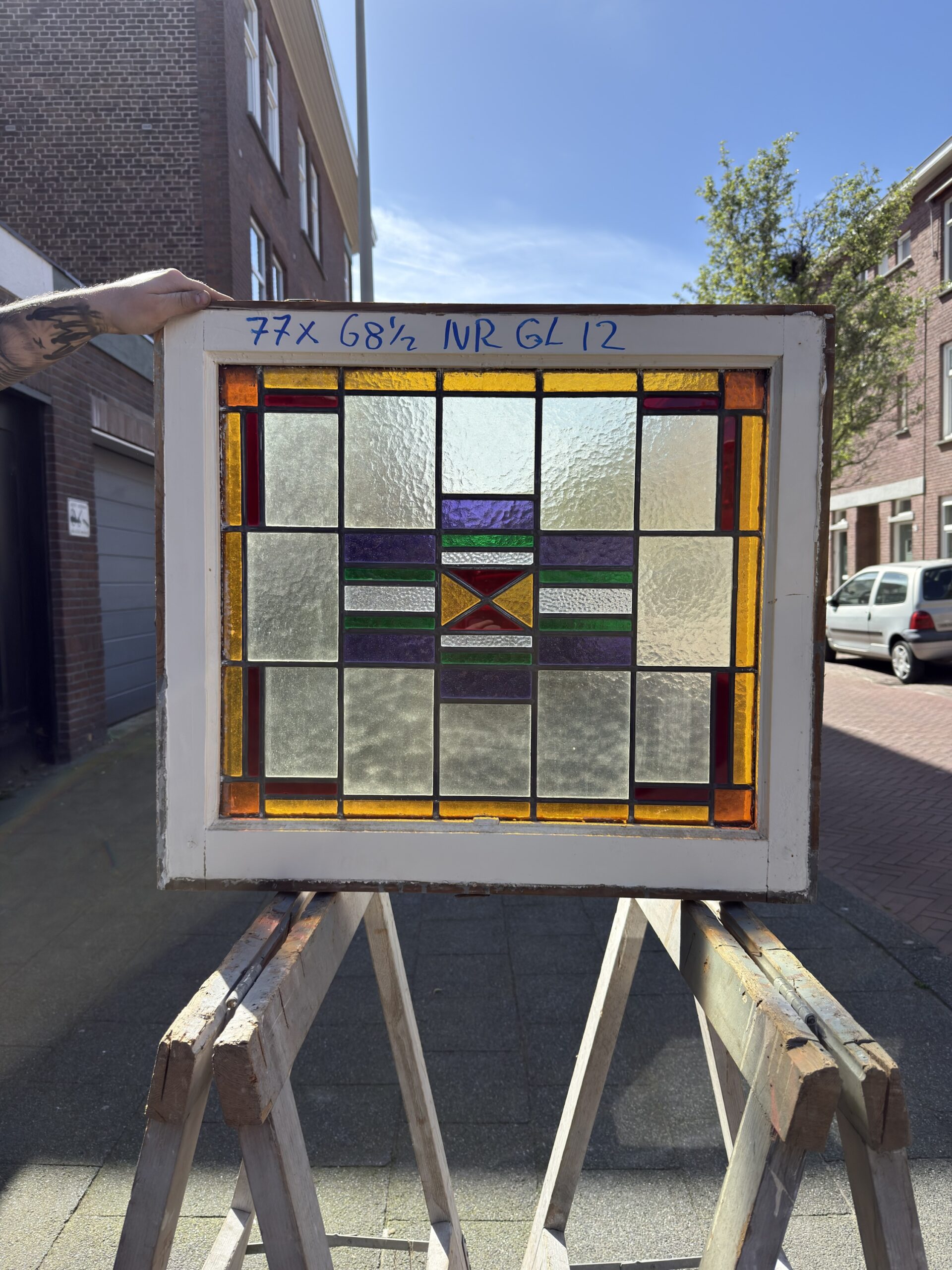 Antiek Glas-in-Lood Raam – Art Deco | 77 × 68,5 cm | Nr. GL12