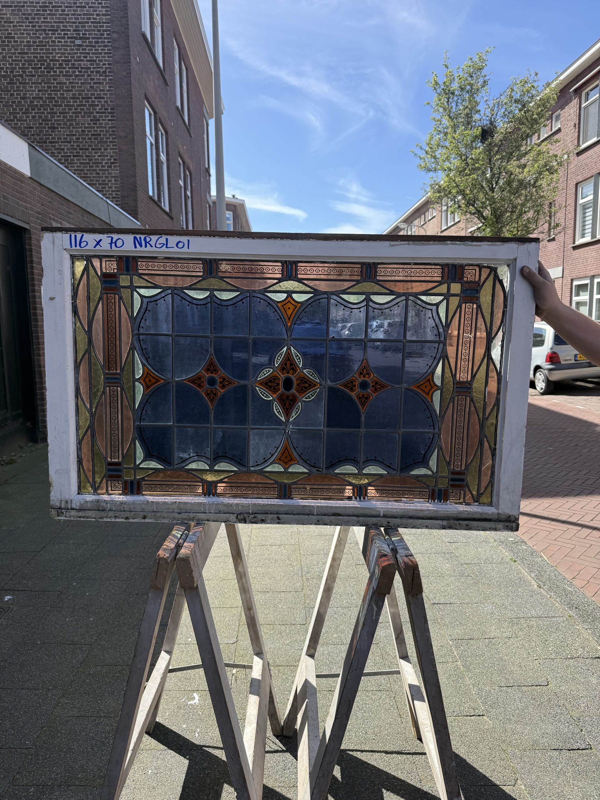 Antiek Glas-in-Lood Raam – Jugendstil | 116 × 70 cm | Nr. GL01