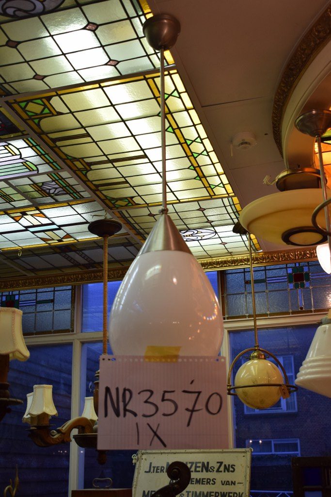 This beautiful art deco lamp has a teardrop shape with milk glass. The lamp is in a very good condition