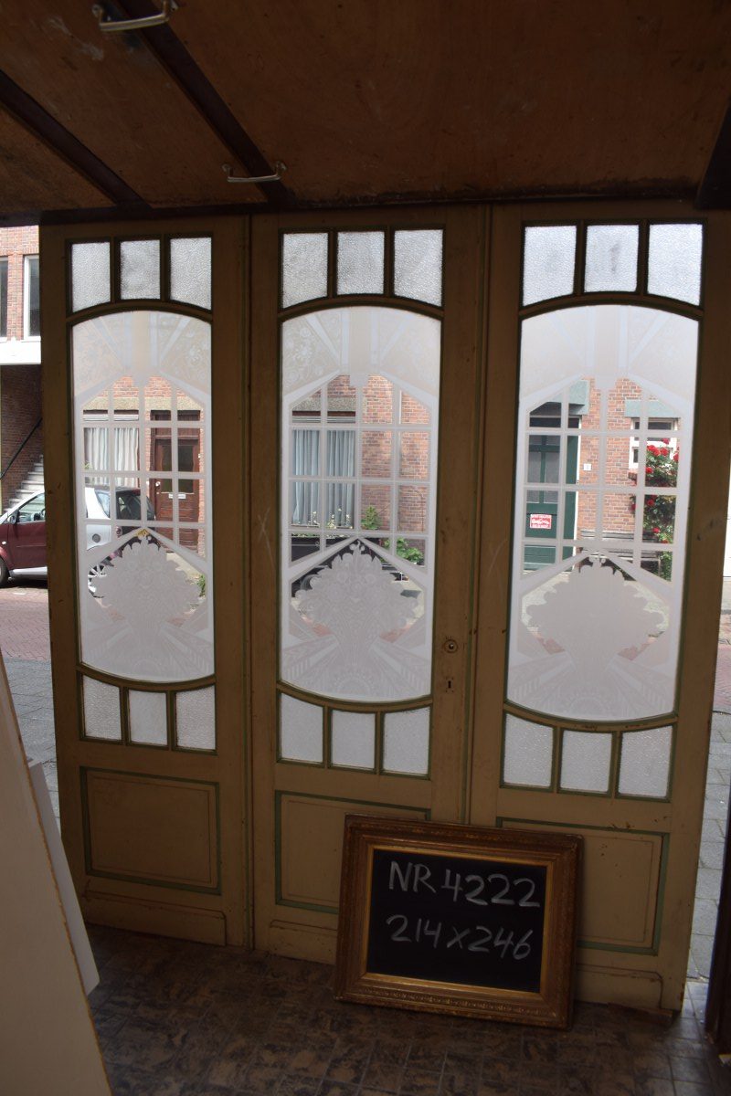Mooie set van 3 deuren in de maat 214 cm x 246 cm voorzien van geëtst glas.