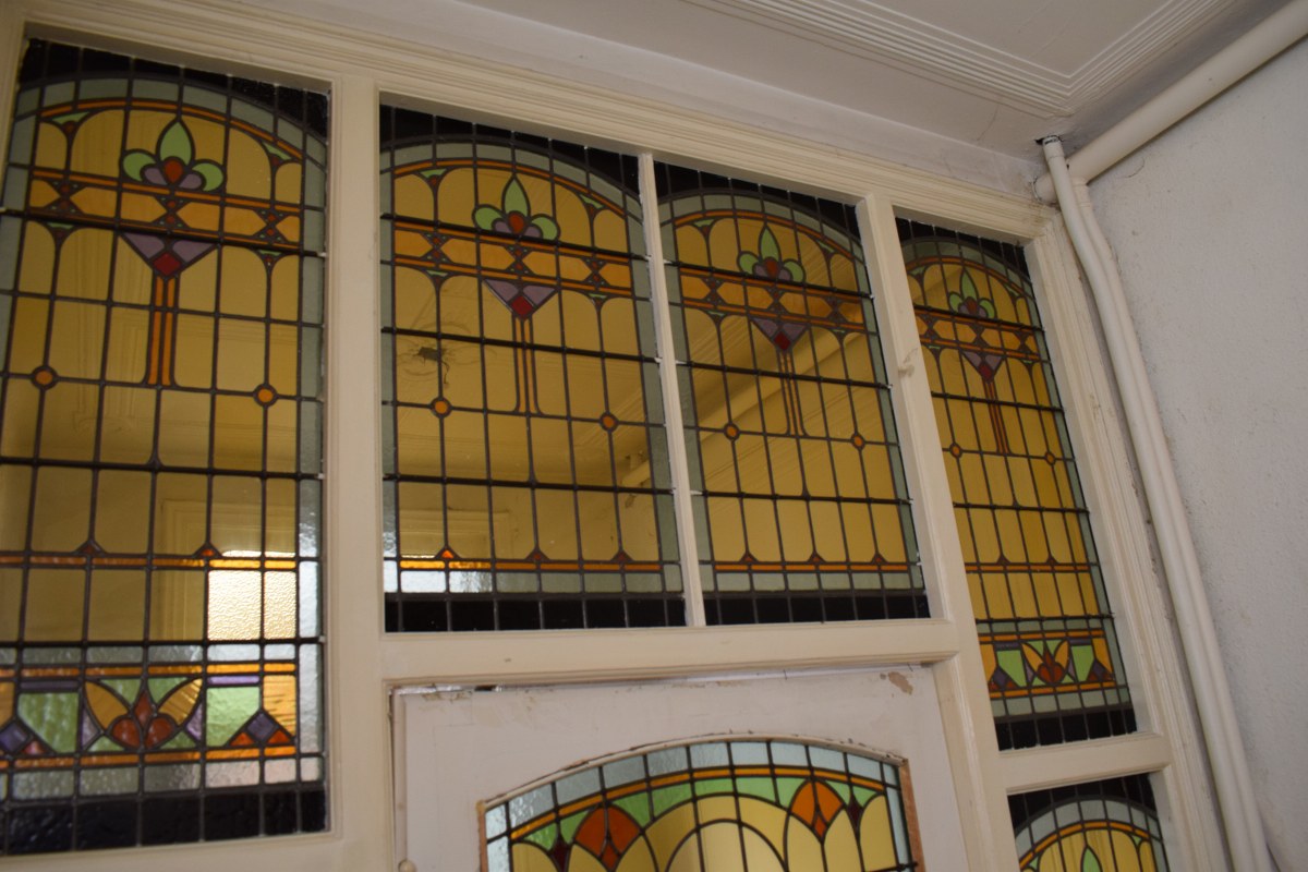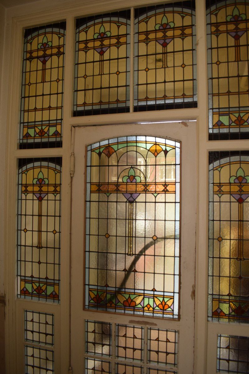 Het portaal afkomstig uit ons eigen Den Haag is voorzien van massief carrara marmeren neuten en dorpels en alle glas in lood ramen zijn in nieuwstaat.