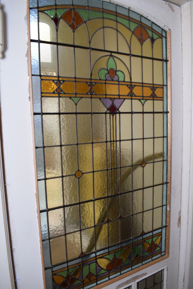 De klapdeur voorzien van 2 bommer scharnieren blijkt helaas totaal krom te zijn en deze wordt door ons geheel nieuw gemaakt, U krijgt dus een nieuwe deur waar wij het glas in lood in overzetten.
