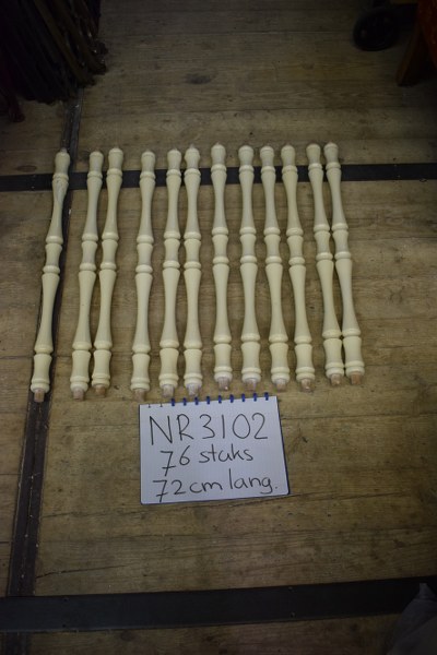 Grote partij houten trapspijlen van 76 stuks de lengte van de spijl is 72 cm