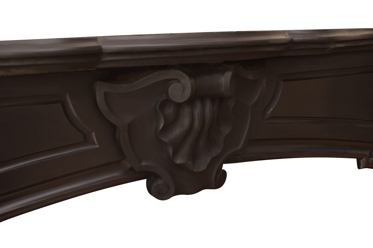 Deze prachtige en tevens unieke schouw is vervaardigt uit noir de mazy marmer, dit marmer staat bekend om de diep zwarte kleur.
