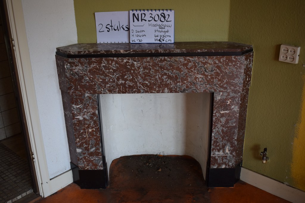 Deze prachtige marmeren hoekschouw is voorzien van rode omloop.