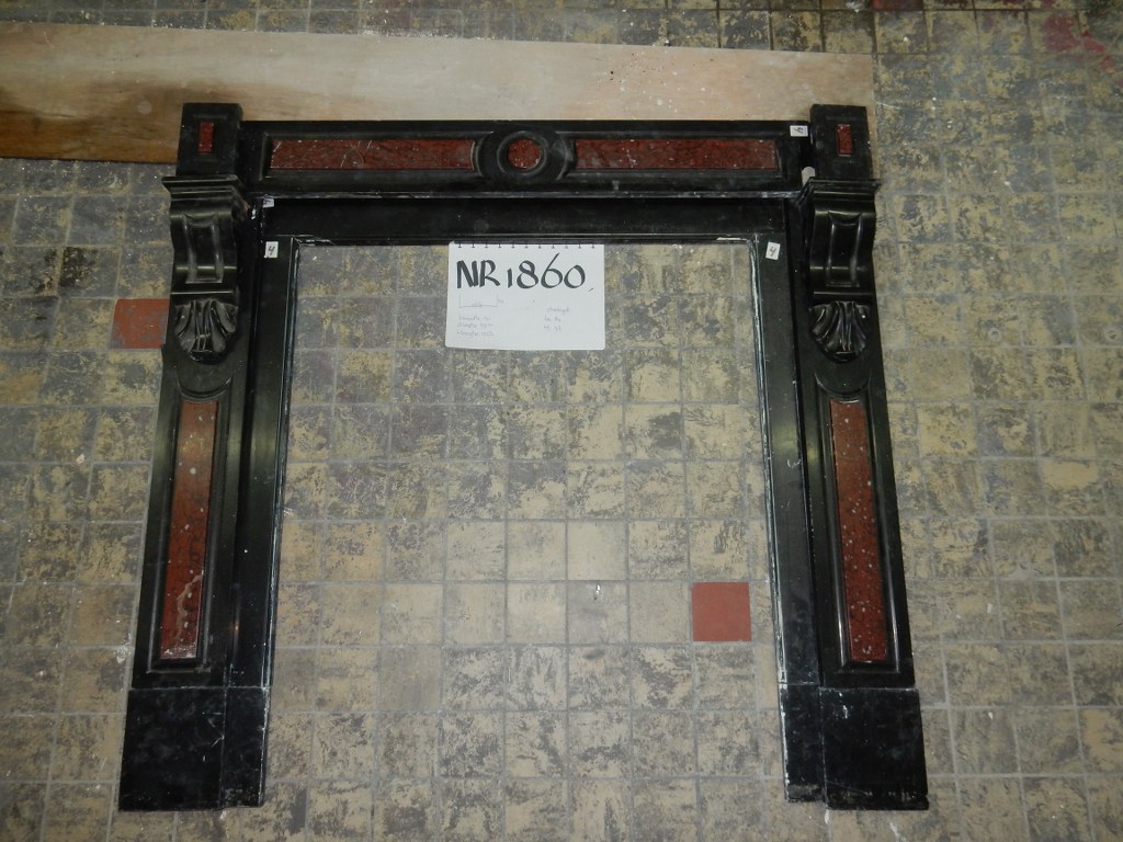 Deze prachtige marmeren schouw is voorzien van zwart met rode omloop.