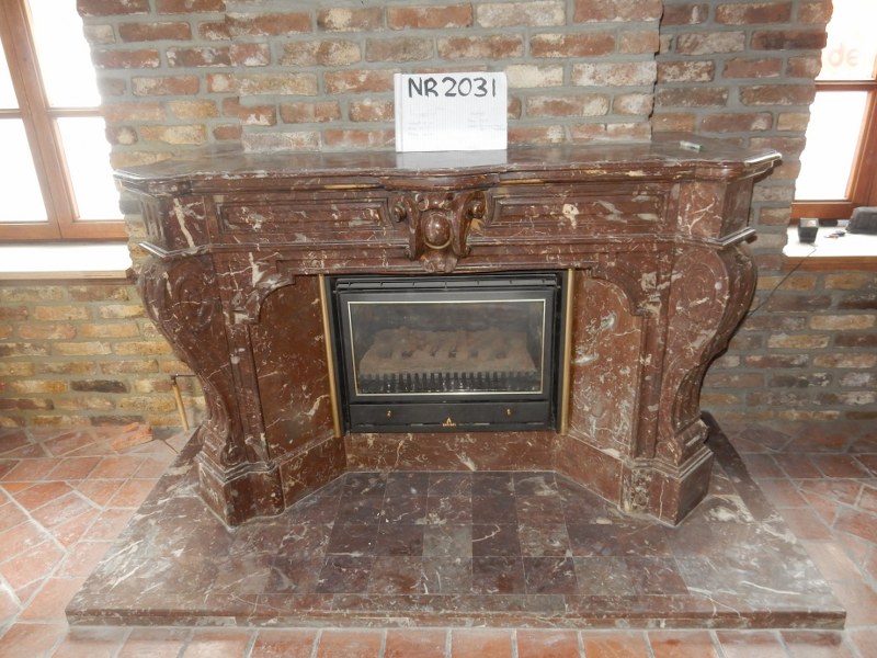 Prachtige rode Louis Philippe schouw uit begin 19e eeuw. Het voor front heeft een mooie grove coquille en de benen zijn voorzien van mooie strakke graveringen dat in de schouw zelf terug komt.