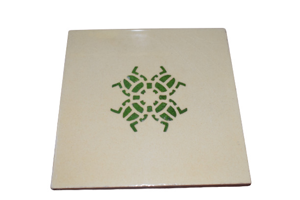 De tegel betreft een ontwerp van de chef van de schilders in de Rozenburg Fabriek Dominicus de Ruiter.