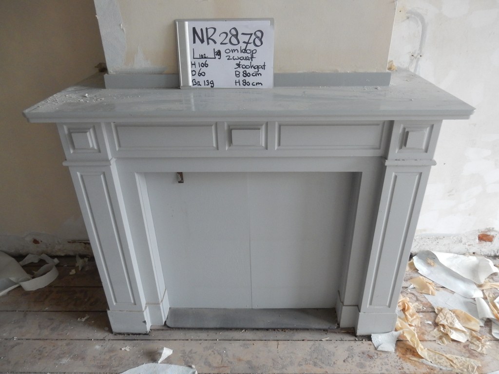 Zwart marmeren schouw op de foto wit geschilderd, wordt door ons weer in originele staat gemaakt.