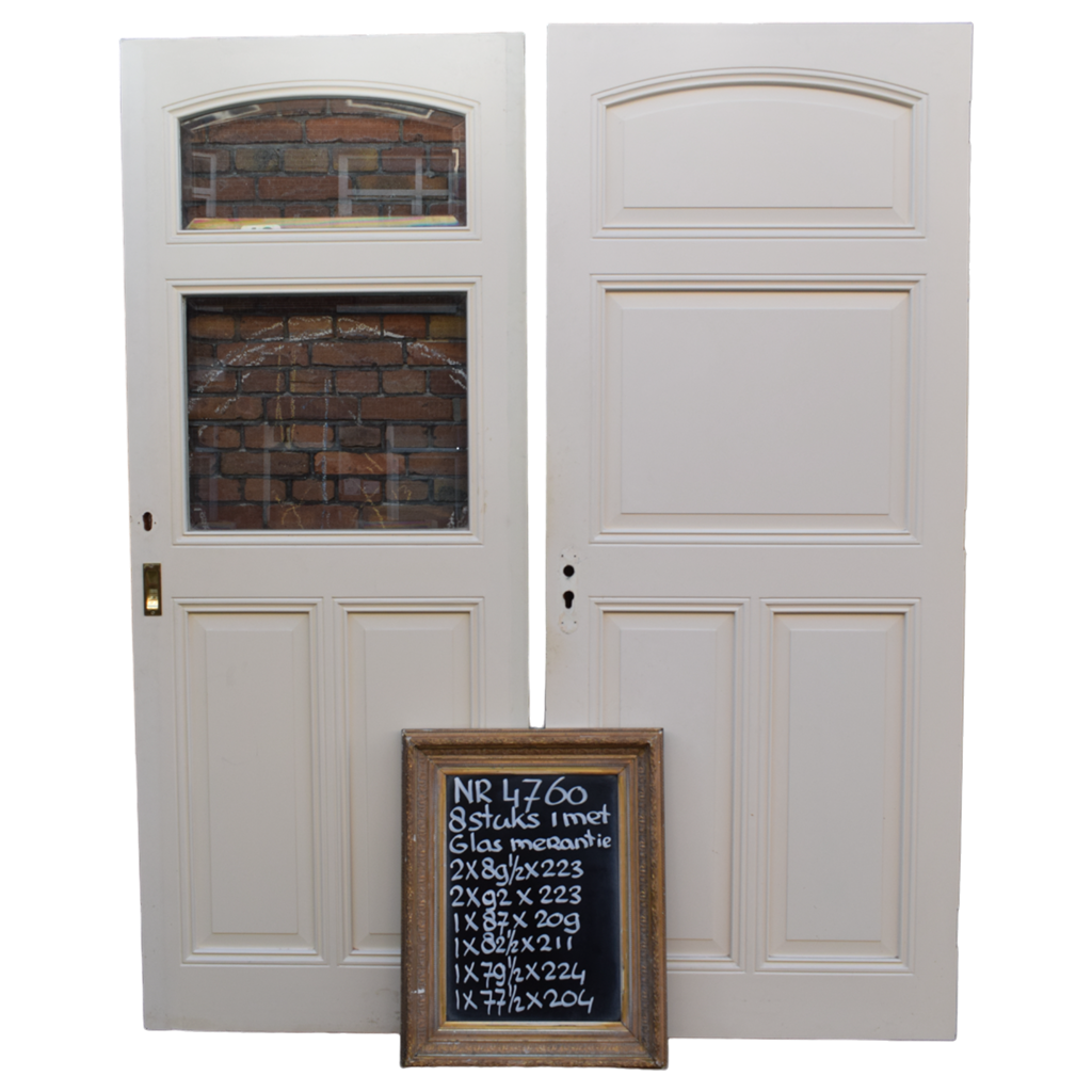 Verrijk je interieur met de “Set van 8 Meranti Paneeldeuren” van Mammoet Oude Bouwmaterialen. Deze set omvat 2 deuren van 89,5 x 223 cm, 2 deuren van 93 x 223 cm, 1 deur van 87 x 209 cm, 1 deur van 82,5 x 211 cm, 1 deur van 79,5 x 224 cm, en 1 deur van 77,5 x 204 cm. Zoals op de foto te zien is 1 deur met glas. Gemaakt van hoogwaardig Meranti hout belichamen deze deuren vakmanschap en duurzaamheid. Voeg karakter toe aan elke ruimte met de unieke afmetingen en het stijlvolle design van de “Set van 8 Meranti Paneeldeuren,” waar functionaliteit en esthetiek samenkomen.