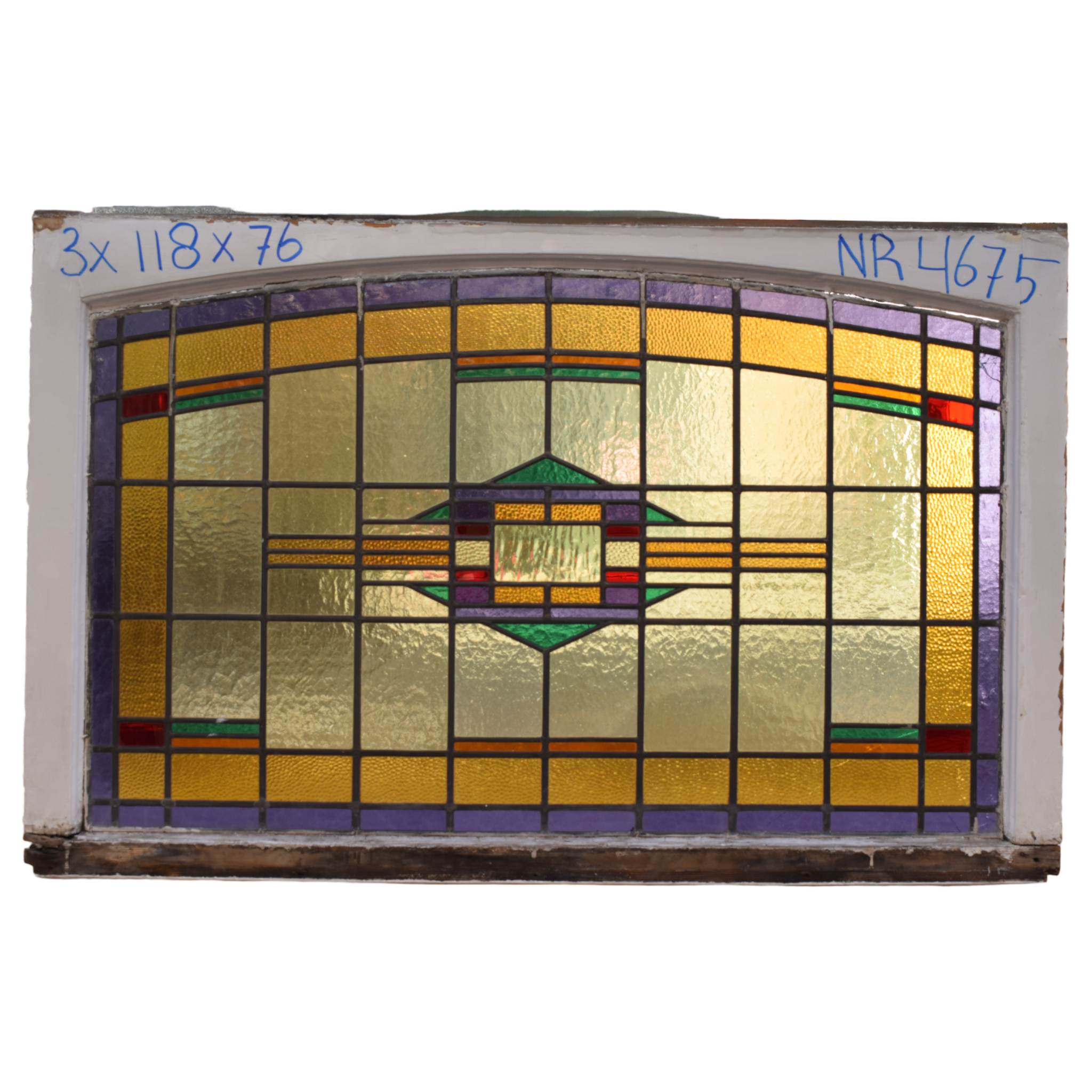 3 Beautiful stained glass windows in size ( frame ) 118 cm wide x 76 cm high