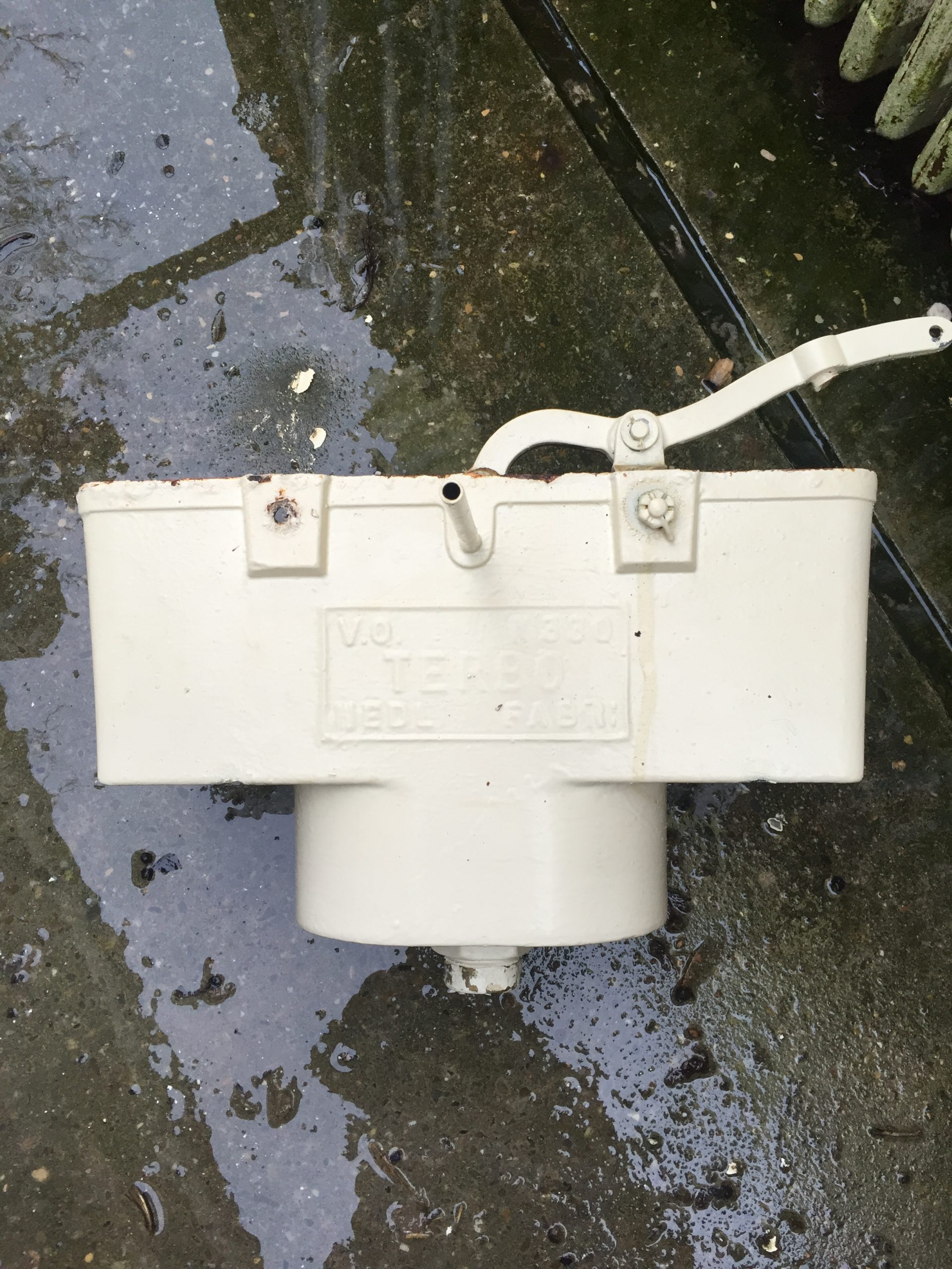 Porcelain toilet/toilet puller with text ”TREKKEN” No. 02